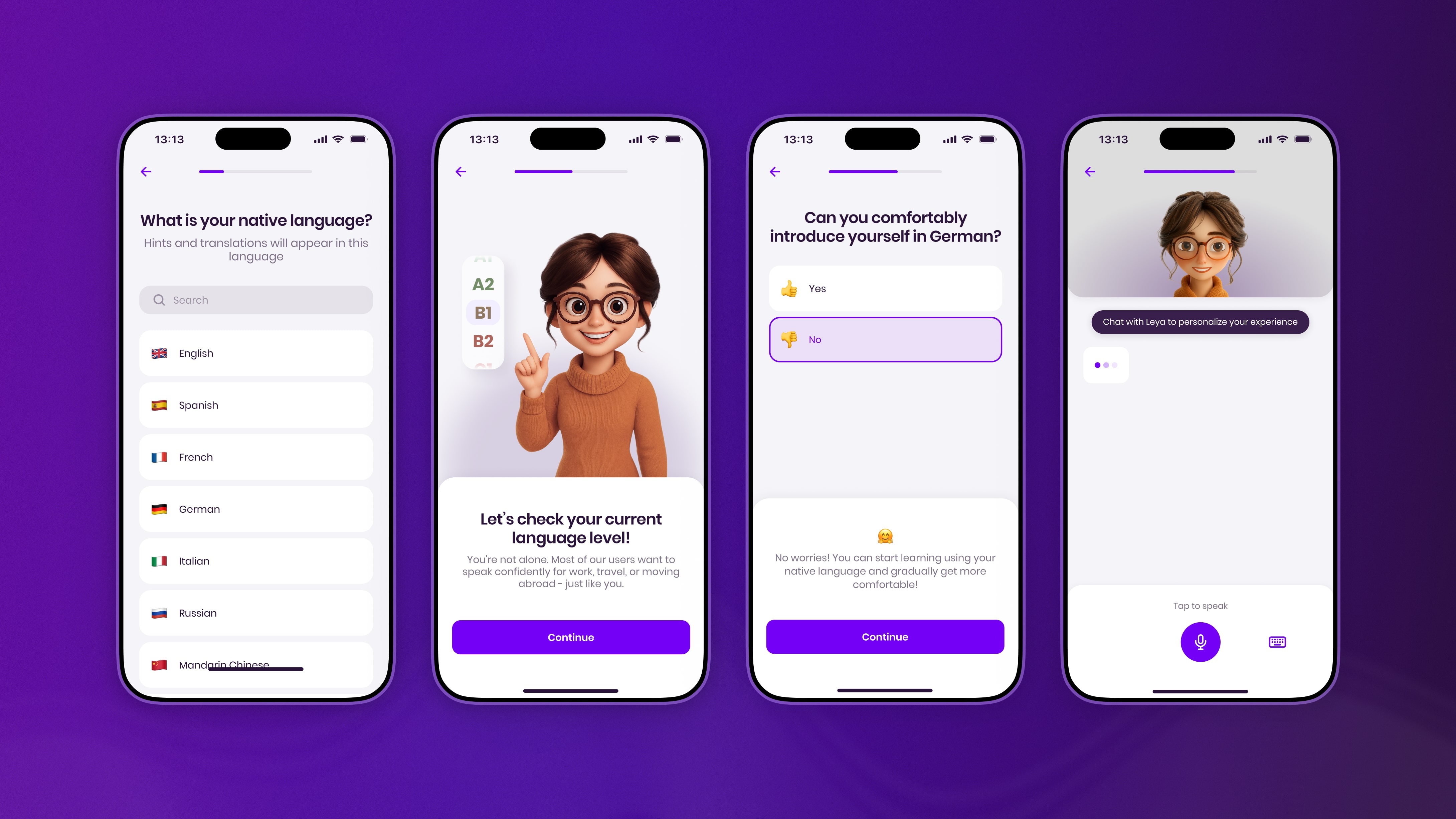 Onboarding and learning path were redesigned to make the first steps effortless. Users met their avatar early to build connection and landed on a learning path where the next action was always one tap away. Introduction of easier non-verbal tasks lowered friction and gradually eased users into speaking.