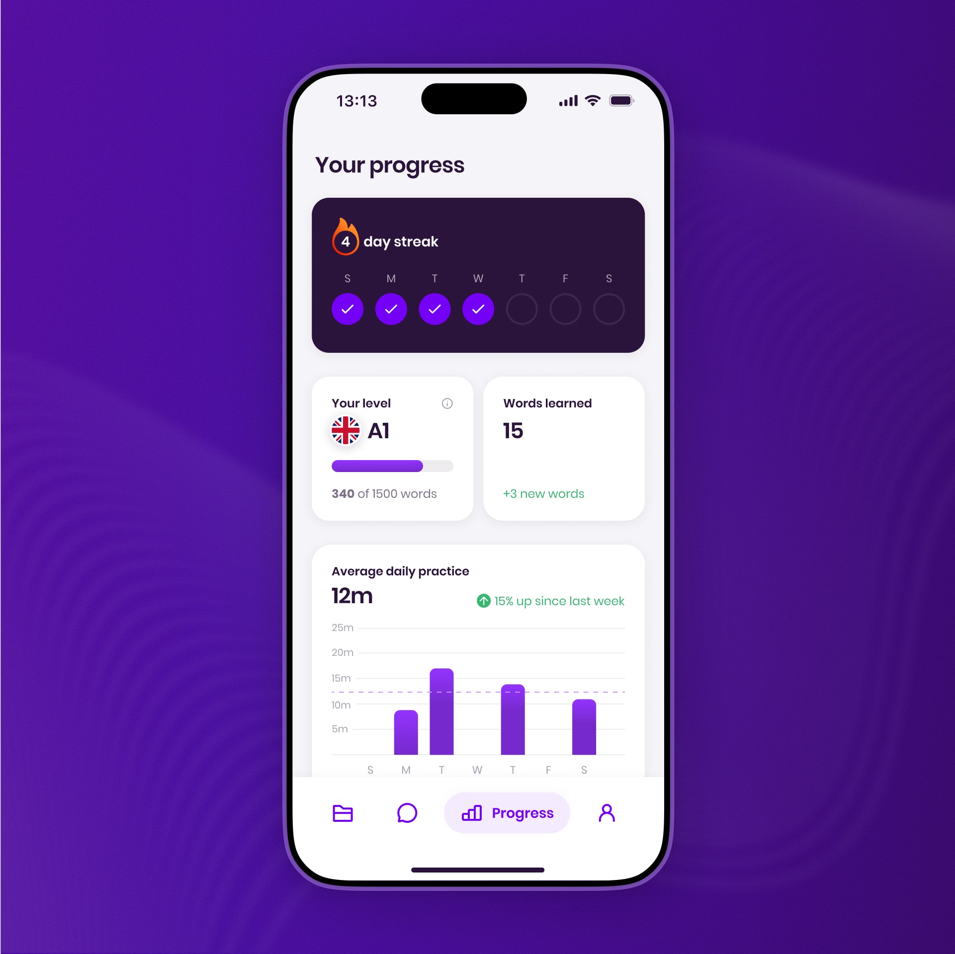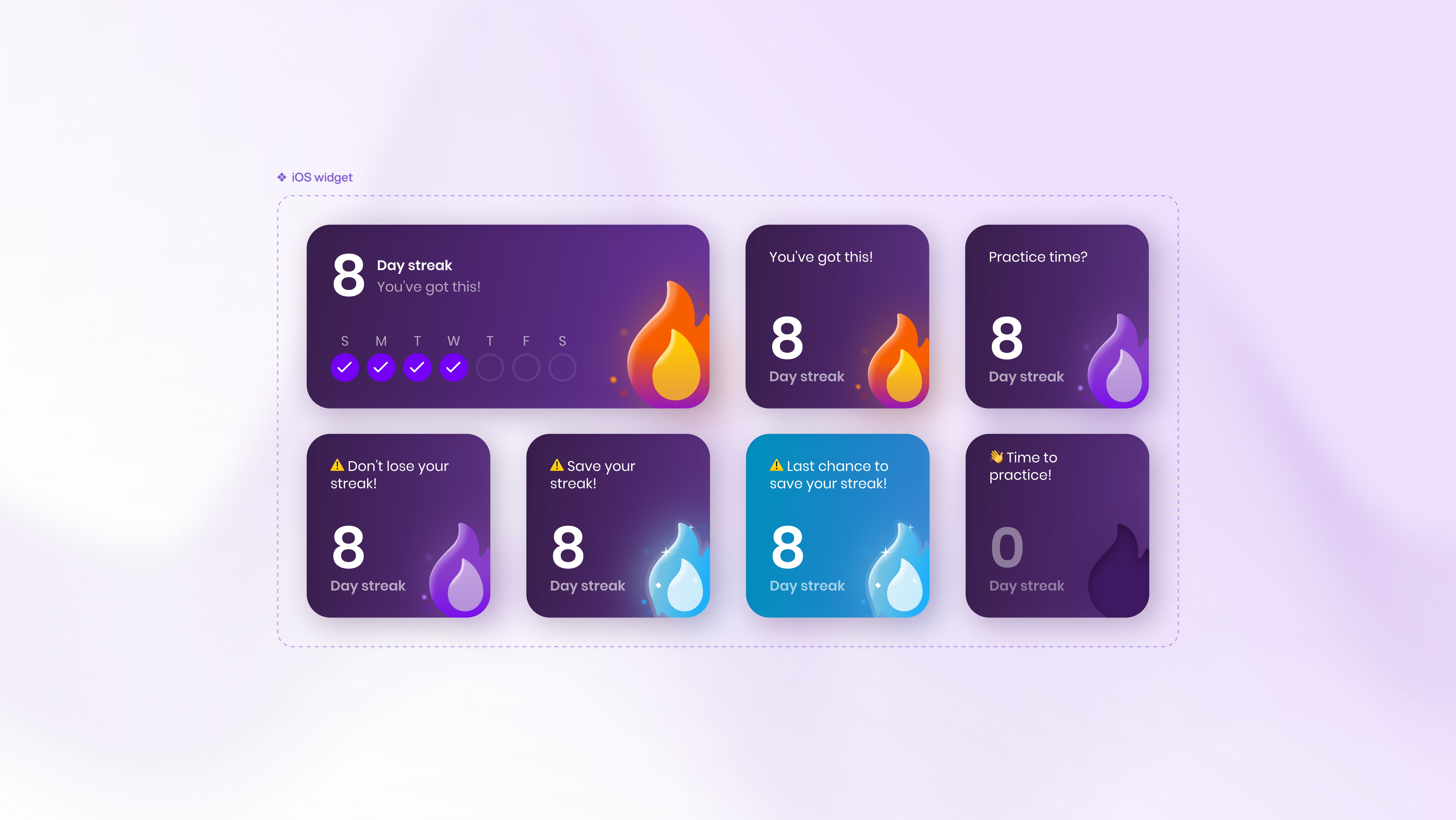The initial app offered little positive reinforcement. We added progress celebrations (streaks, milestones, achievements), progress tracking to reinforce a sense of growth, and subtle animations to add delight. Practicing became fun, satisfying, and worth returning to.